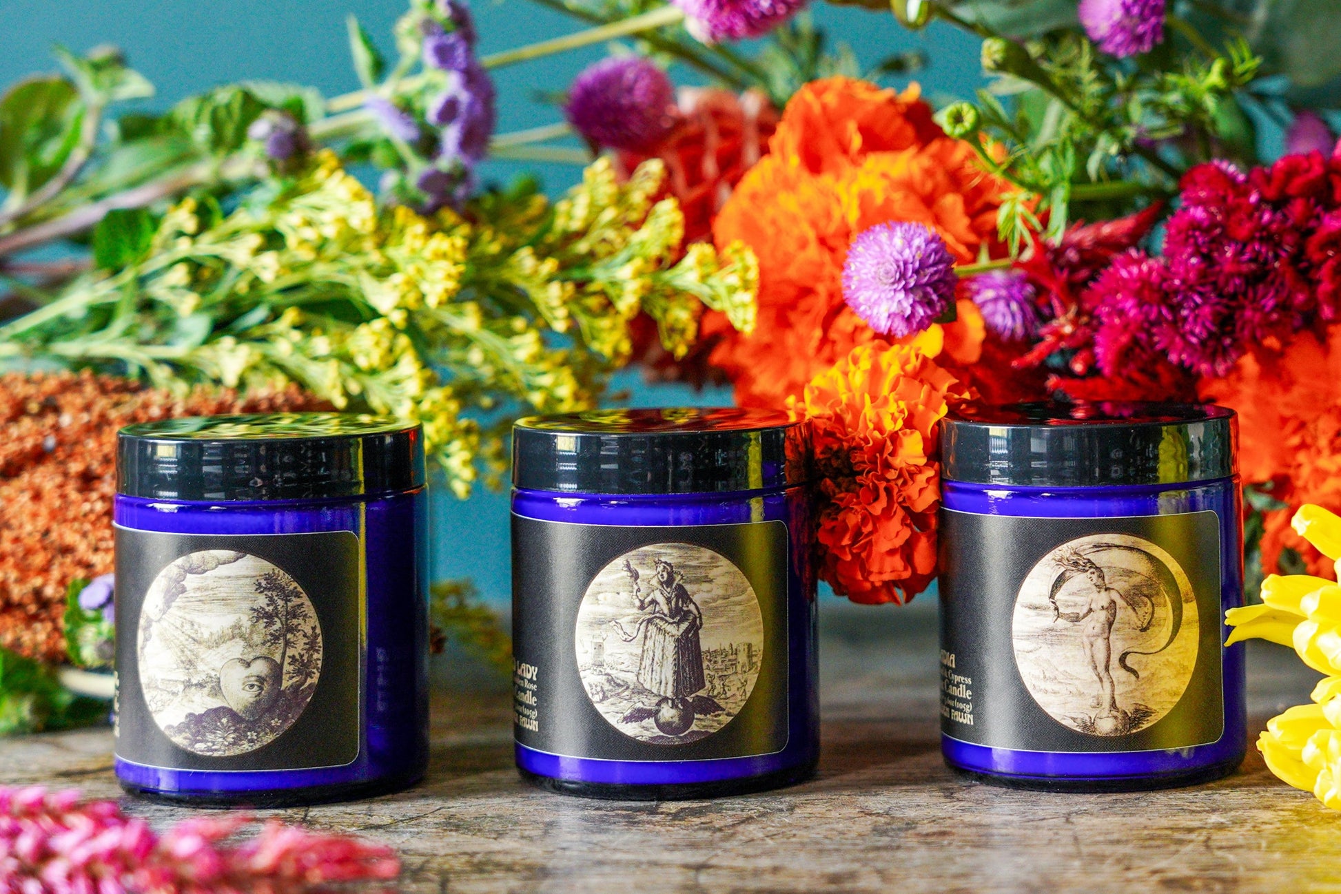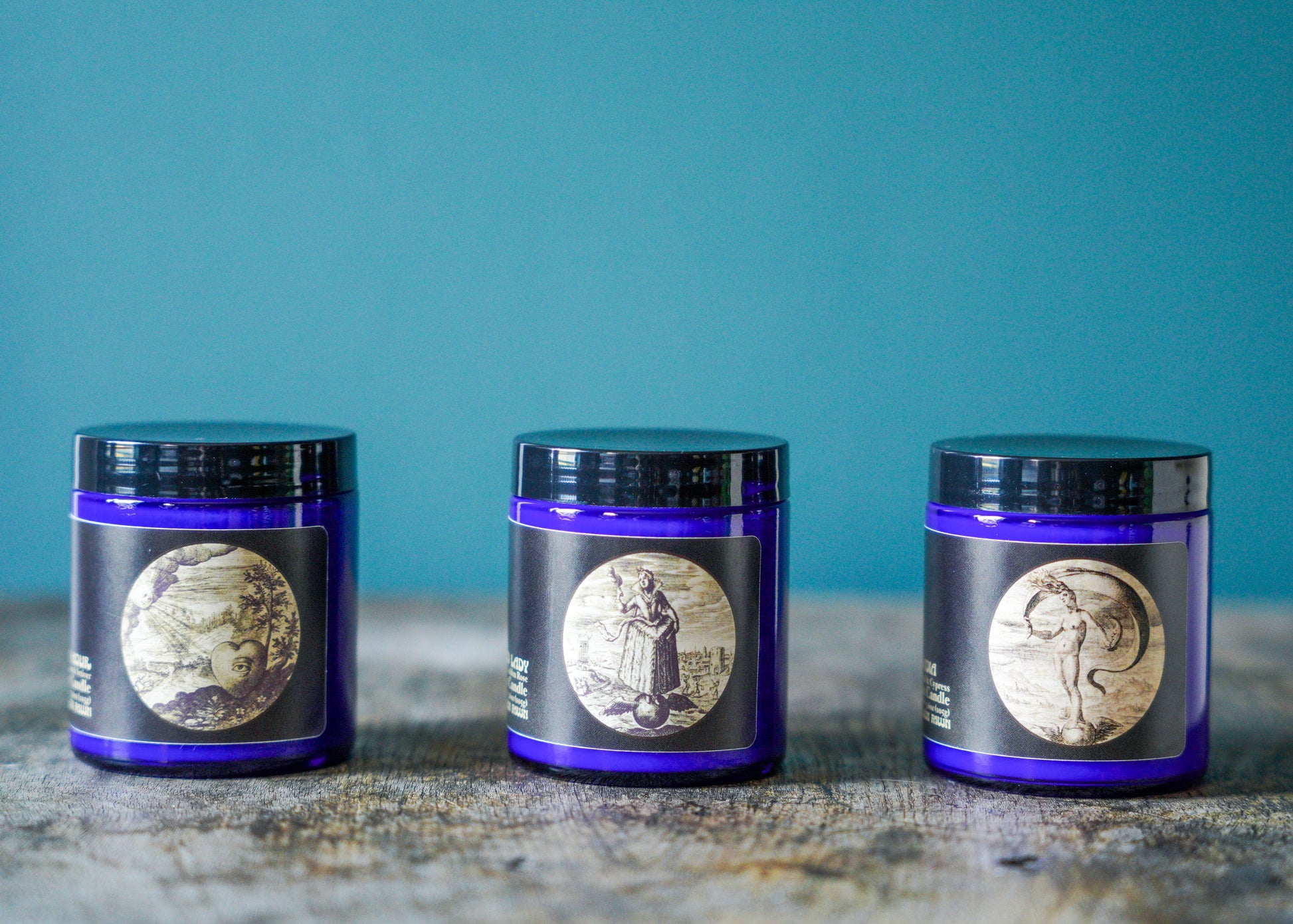 Discovery Sets are a way to experience all our signature Golden Fawn scents in a travel size blue apothecary jars.