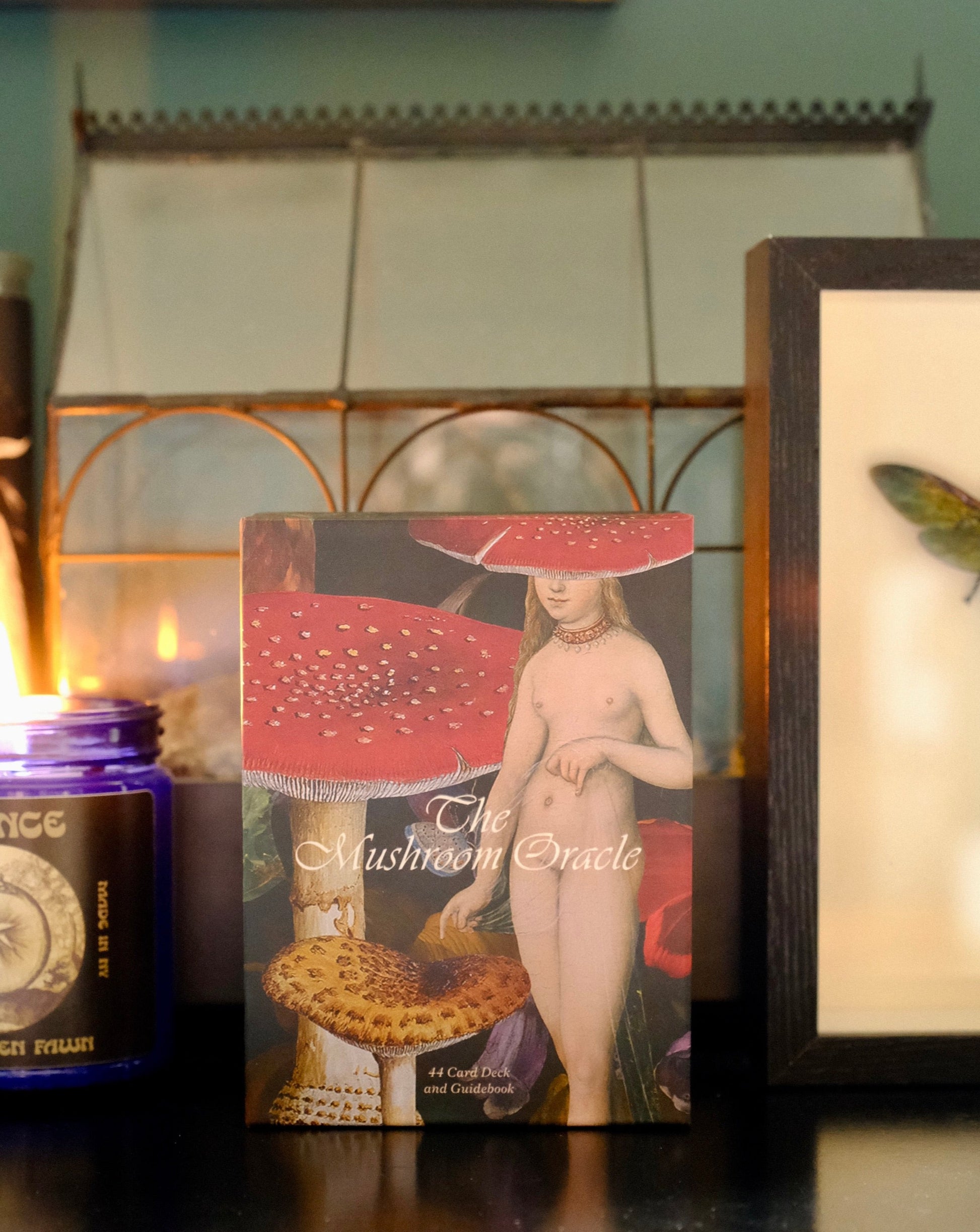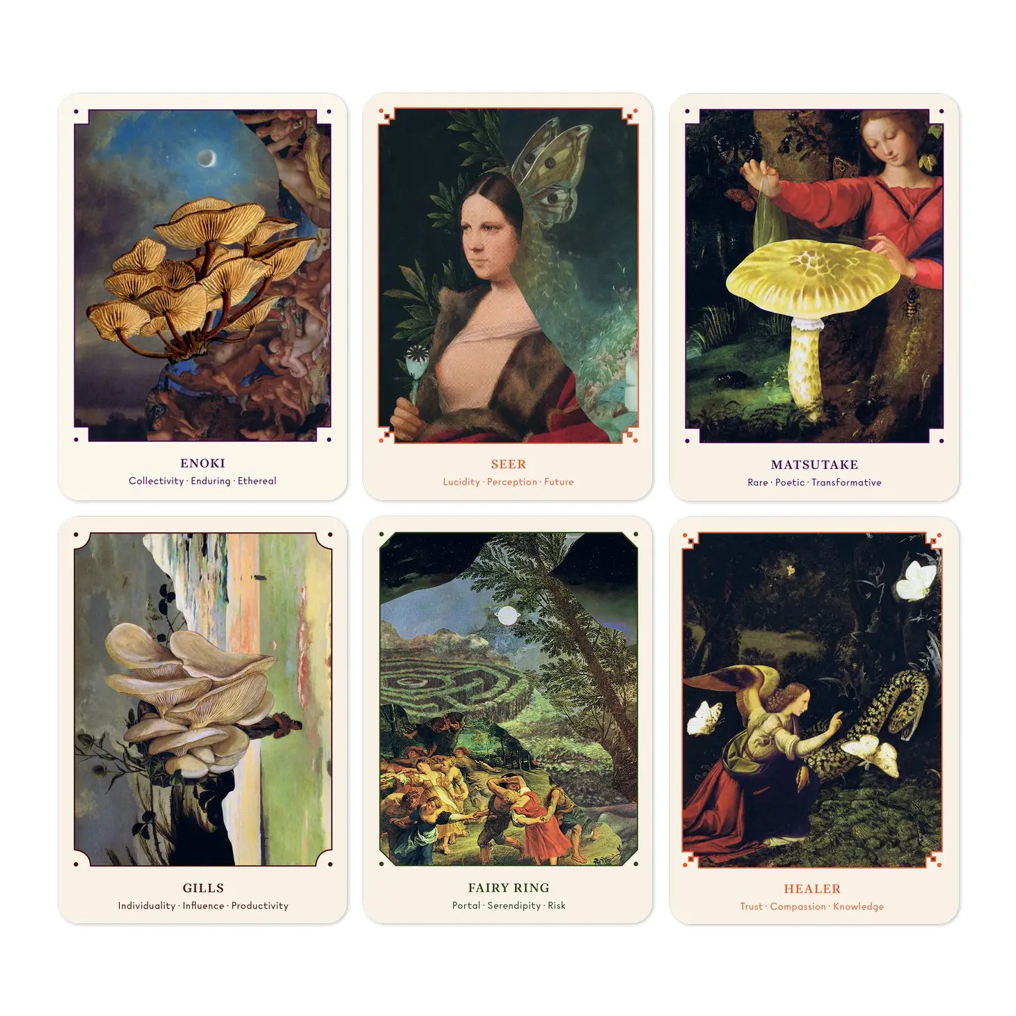 A dreamy oracle deck featuring mushrooms, the forest, mushroom people, and fungal structures. It asks the user to consider their interconnectedness with nature, themselves, and others. A perfect tool to guide you through new beginnings, forks in the path, closings, and seasonal transitions