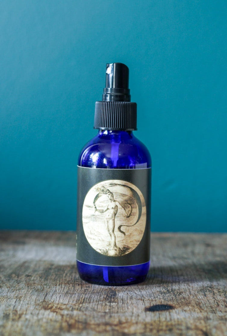 Our Ritual Room Sprays are a flame-free alternative for setting the vibes in your space. Each Spray comes in our signature blue glass apothecary bottle, with a black atomizer top to effortlessly carry the fragrance throughout your home. They are perfect for setting the mood in your space anytime or for preparing an area for ritual work.